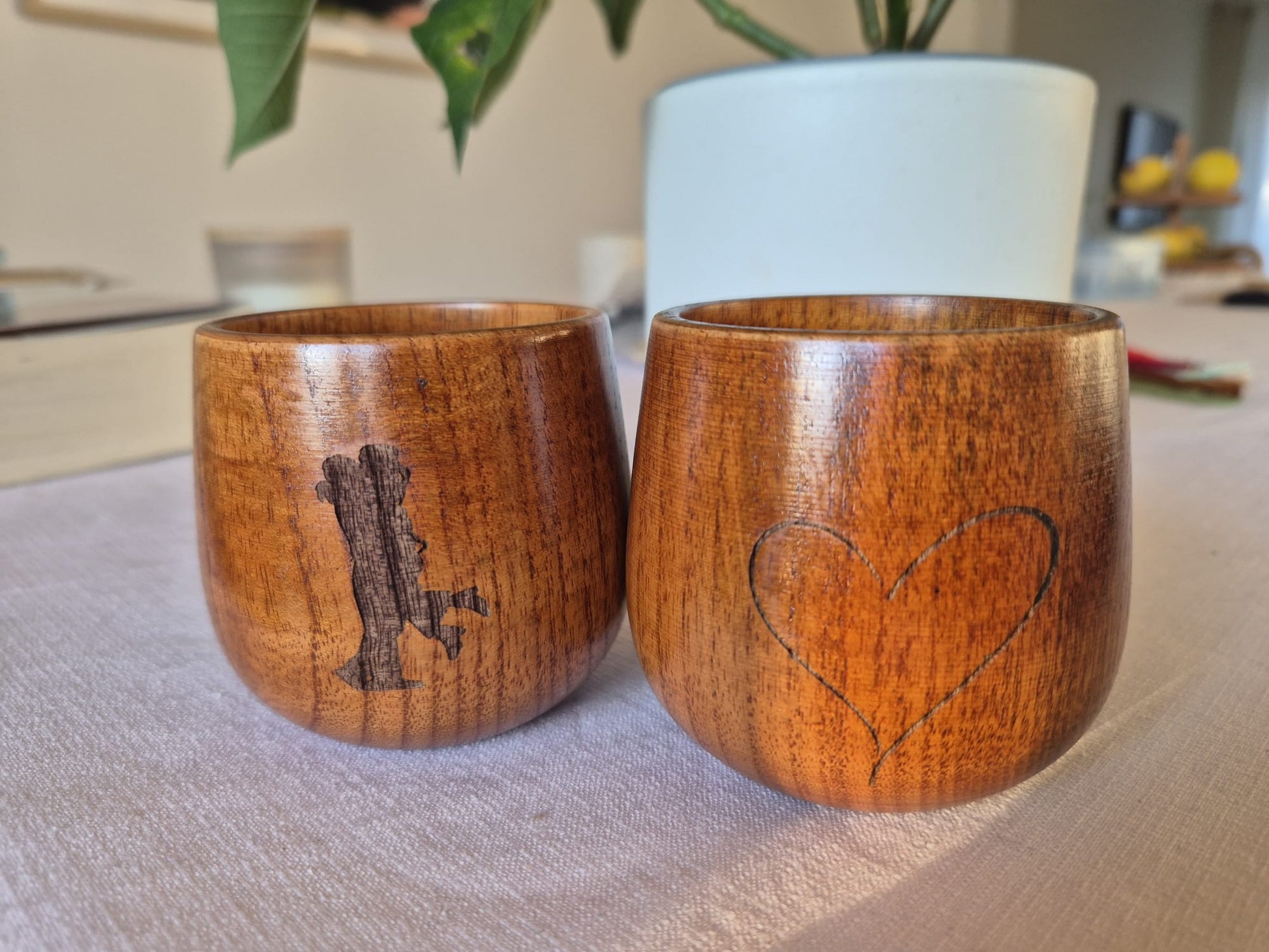 Offrez un instant de douceur à deux avec ce duo de tasses en bois gravées, symbole d’amour et de complicité.