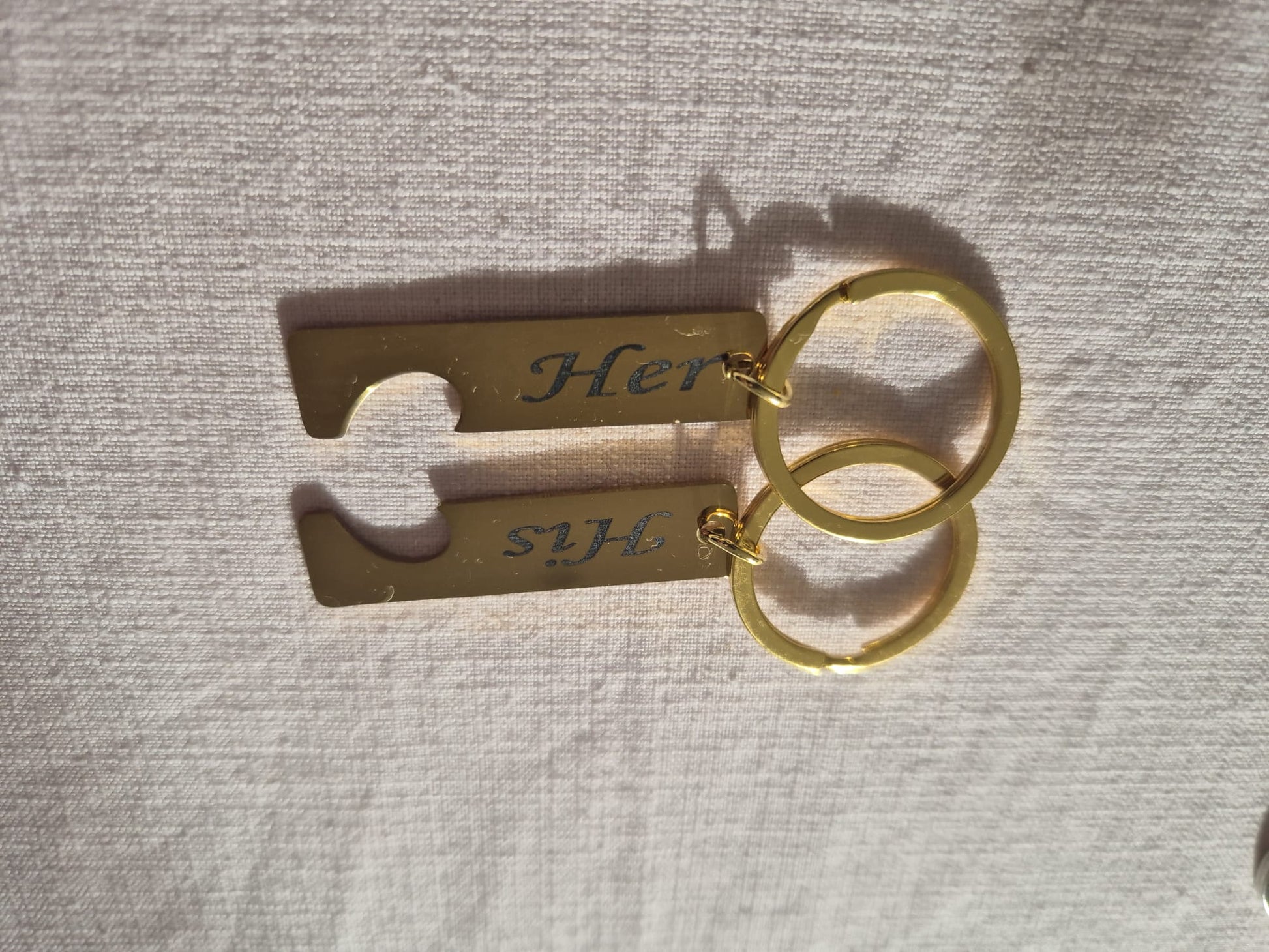 Un duo élégant en acier inoxydable doré, gravé Her et His.